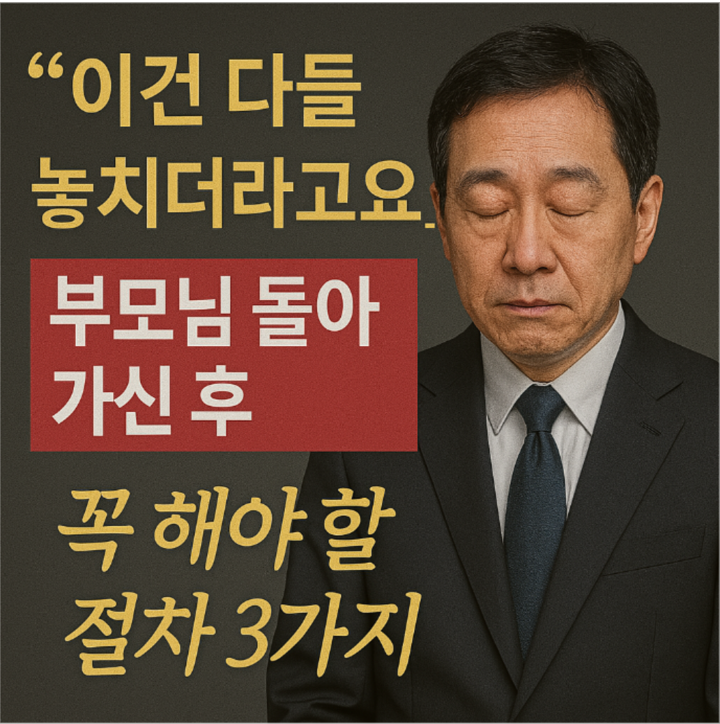 부모님이 돌아가시는 일은 감정적으로 큰 충격을 주는 사건입니다. 그런데 그 슬픔에 잠겨 행정처리와 세무 절차를 놓쳐버리는 순간, 수천만 원의 손해와 법적 문제를 떠안게 될 수 있습니다.